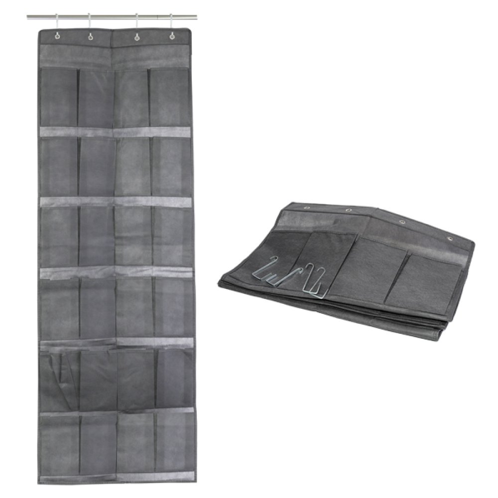 PLS 24 Pocket Hanging Organiser. 6 Tiers and 24 Pockets. This Hanging Pocket Organiser is Great for Storing Shoes, Boots, Hats, Clothes, Linens, Arts & Crafts, Toys and Much More. Lifts your itemsoff the Floor and Organises Them. Size: 55cm x 160cm with each Pocket 21x13cm. Includes 4 Hanging Hooks.