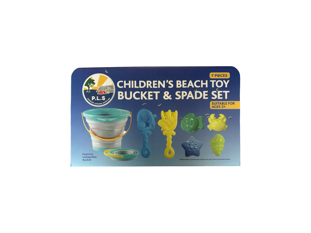 Children?s Beach Toy Bucket and Spade Set. Specifications, Colours and Contents May Vary from Illustrations Shown. Suitable for Ages 3 Plus. Contents include Collapsible Bucket, with assorted spades and moulds.