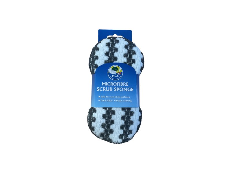 PLS 2 x Microfibre Printed Sponges 190mmx100mm - GREY/PLAID. Dual Sided Microfibre Scrub Sponge Ideal for Deep Cleaning, Safe for Non Stick surfaces. Absorbs upto 8 times its own weight in water, Machine washable. Do not use Fabric Softener or Bleach. Do not Tumble Dry. Sold in singles or Outer Boxes x 36.