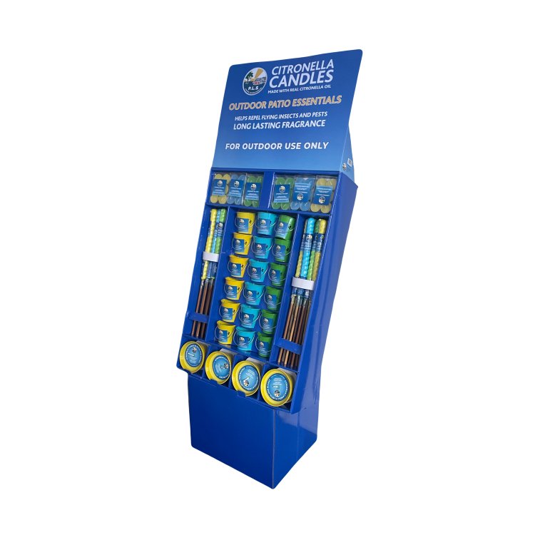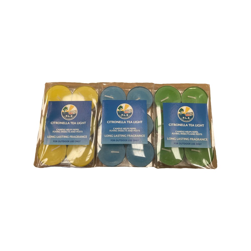 Citronella Candle Display Pack. With a long-lasting fragrance, citronella helps to repel flying insects and pests. This display pack consists of 144 pieces that contain 3% Citronella oils. 48 x 6 - 13G Tealights, 48 x 50G Mini Torch, 36 x 35G Metal Bucket & 12 x 160G Metal Bucket. FOR OUTDOOR USE ONLY.