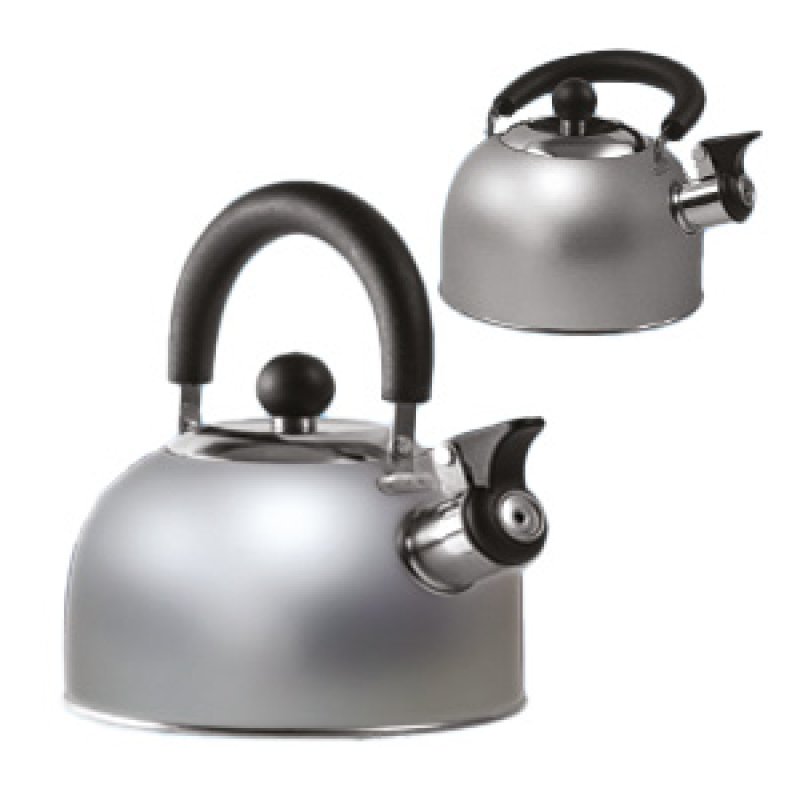 PLS BOX of 12 - CHROME 1.6 Ltr Gas Hob Kettle. 1.6 Ltr whistling kettle with folding handle. This compact kettle is ideal for gas Hobs in Caravans or Motorhomes as well as Camping. Approx Size: Base Diameter 182mm x Height with handle up 220mm or 150mm with handle down. Also Sold in Singles SU300.