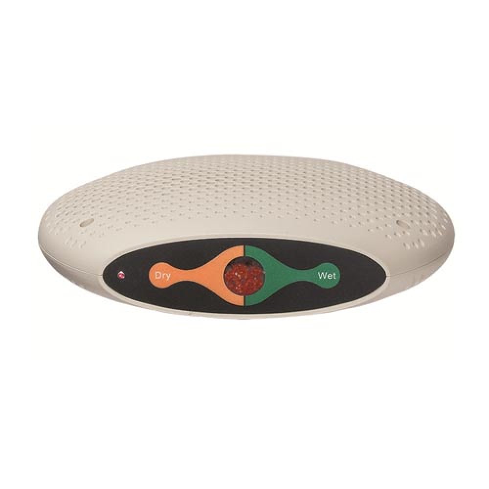 Pennine AQUA PEBBLE Moisture Absorber. This product includes a moisture absorber body, a dry/wet crystals indicator, moisture absorbing holes, charging indicator light and a mains plug connection. The moisture crystals indicator tells you when to recharge. Orange indicates that the crystals are dry and green indicates that the crystals are wet. Up to 300 uses. Voltage - AC220 - 240V, 50/60Hz Power - 25W Net Weight - 0.63KG Size - W174 x D50 x H114mm Hygroscopic Capacity - 150ml