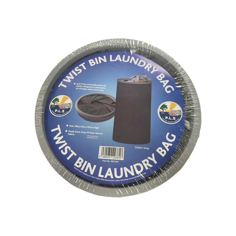 TWIST Bin Laundry Bag - Made from grey PP non-woven fabric. Just twist and easily pops up! Easily collapsed to save space on storage, when not in use. Colour - Grey. Size: 38cm dia x 65cm high.