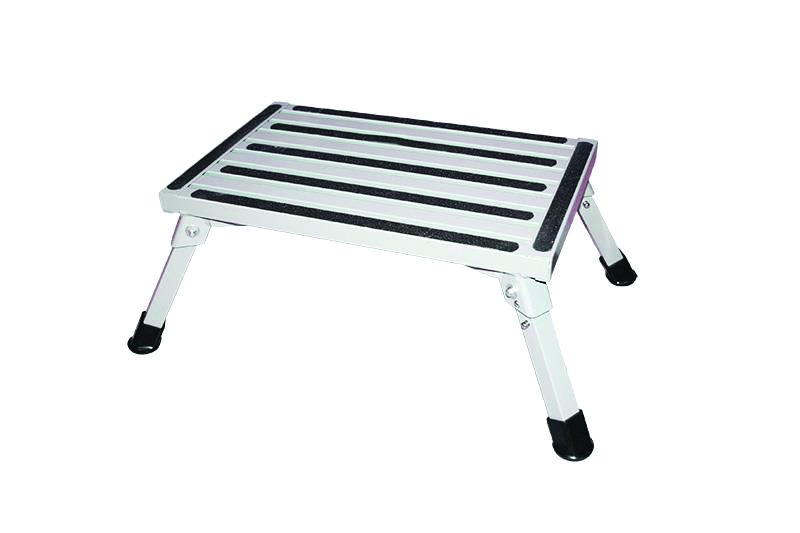 Aluminium Folding Step Dimensions: Ready to use 615x400x230mm. Folded 480x300x72mm. Weight 2.6 Kgs Foot Plate: 480x300mm with Anti-Slip Strips Max weight limit 150 Kgs As supplied to Elddis/Explorer Group