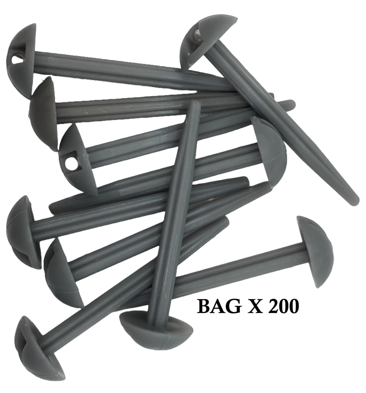 Box of 200 x GREY Plastic Groundsheet Peg with Round Dome Top and extractor Hole for groundsheets in a Tent or Awning.