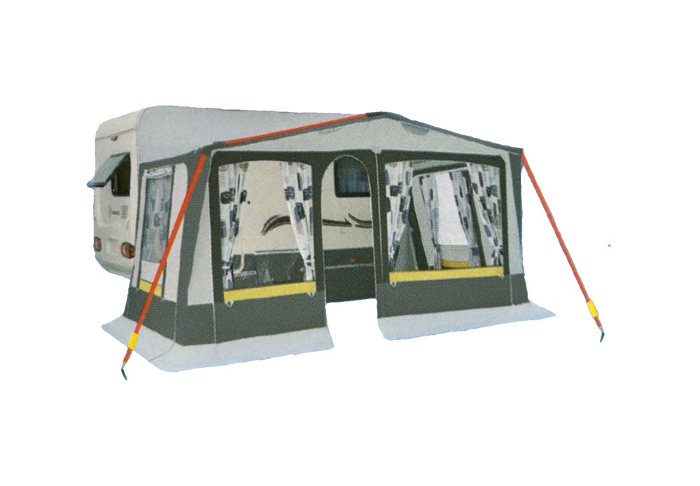 PLS Awning Tie Down Kit. Universal Awning Tie Down kit, designed to go right over the top of your Caravan or Motorhome awning to hold it securely down during stormy / windy weather. 12.5m x 50mm Adjustable webbing strap with Hi-Viz ends to reduce trip hazard. Comes complete with Two Large ground stakes and One tensioning spring. Sold in singles or BG300-16 Outer Boxes x 16.