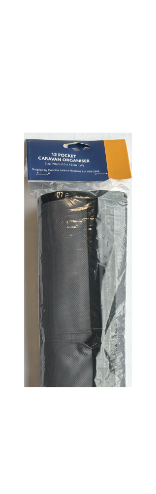 PLS Caravan Organiser - 12 Pocket . This Hanging Organiser is Great for Storing Shoes, Boots, Hats, Clothes, Linens, Arts & Crafts, Toys and Much More. 12 individual Pockets. Can be hung using eyelets or will wrap round a pole using a pocket with hook and eye fastener. Size: W42xH79cm