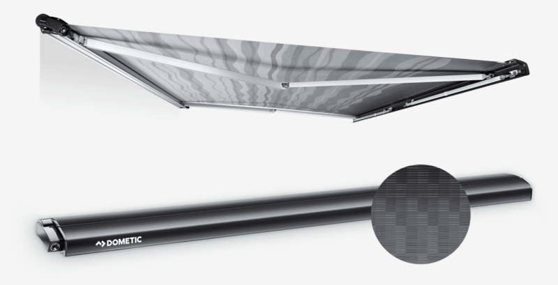 DOMETIC PR2000 3.75 Metre PerfectRoof Awning with Black Case and Grey Horizon Cloth. The PerfectRoof is an ideal roof mount for panel vans it is designed to fit on the roof with many vehicle-specific adapters available. Its compact dimensions and lightweight make the Dometic PerfectRoof PR 2000 a perfect roof-mount solution for panel vans, smaller motorhomes and caravans. It even leaves room on the roof for other accessories (solar panels, etc.). It provides all the important Dometic features, e.g. the seamless, high-quality awning cloth. Operation is with a telescopic crank; the support legs are neatly stored in the front rail and can be easily folded out by a spring lock. A wide choice of adapters helps to make the awning fit on nearly all types of vehicles. Quick and easy to set up and adjust by one person.
