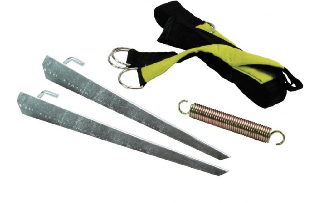PLS Box of 16 x Awning Tie Down Kit. Universal Awning Tie Down kit, designed to go right over the top of your Caravan or Motorhome awning to hold it securely down during stormy / windy weather. 12.5m x 50mm Adjustable webbing strap with Hi-Viz ends to reduce trip hazard. Comes complete with Two Large ground stakes and One tensioning spring. Also Sold in singles BG300