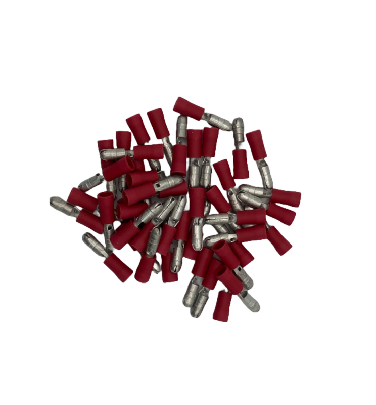 Bag of 100 x RED 4mm Diameter Male Bullet Connector. Suitable for Cable size 0.5mm to 1.5mm
