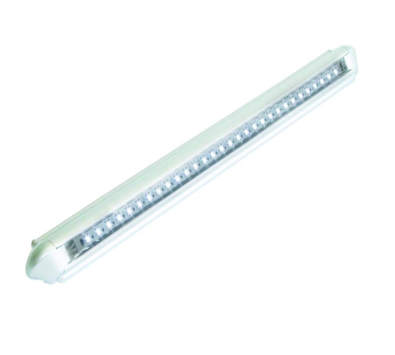 LABCRAFT White LED Astro 12v Awning Light. Waterproof to IP66. This LED Astro light is 593x 43x 41mm With its weatherproof casing, it is not only very bright but also energy efficient as the lightreading of 35 lux it gives off is equivalent to a 10w halogen bulb but with 5 times less power. The unit is unswitched.