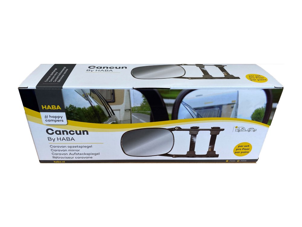Pair x Cancun Mirror. This mirror comes fully constructed with two rubber straps that wrap around the vehicles own mirror. Extendable Clip-on mirror with Adjustable head for existing car door mirror.