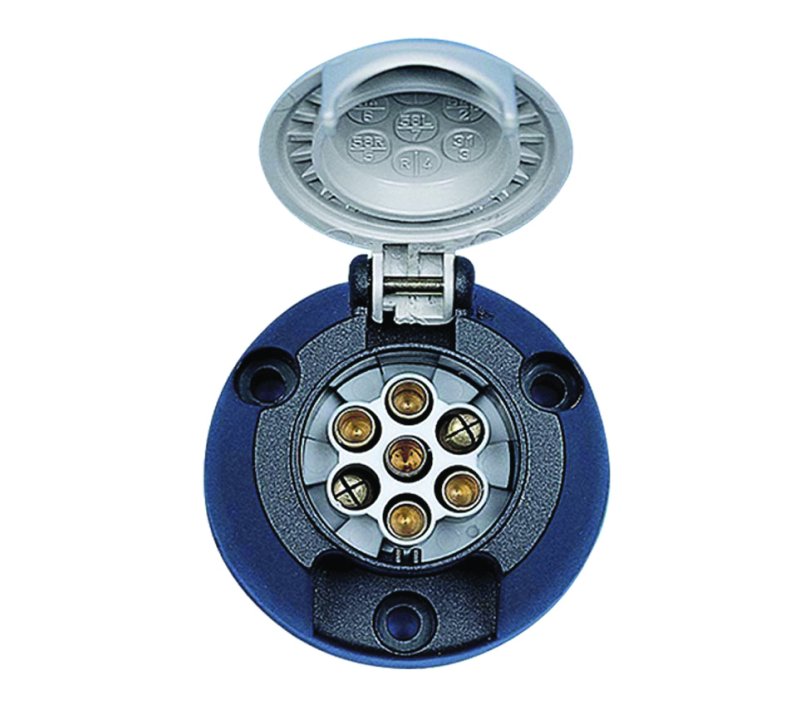 Grey 12S Type 7 Pin Socket. Standard UK 7-pin Caravan socket in grey plastic housing. S-type, to suit grey plug for Caravan internal electrics. Sold in singles or Outer Boxes x 100.