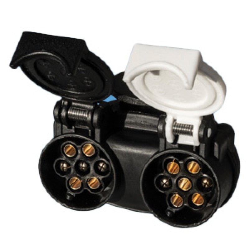 POWERPART Short Adaptor 13 Pin Plug to 7N and 7S Socket. This compact adaptor allows vehicles with 13-pin Euro sockets to fit caravans with the 12N and 12S sockets.