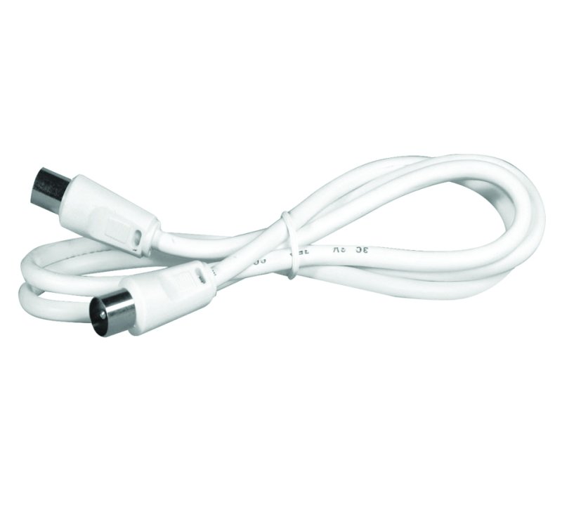 PLS Bagged with Header card. 1 x 1m Coax Cable Extension. A TV coax cable with male fitting on both ends to allow connection from TV socket to TV.