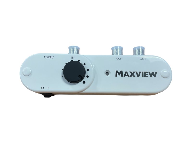 MAXVIEW 1 x Variable Gain Signal Booster 12V or 24v. The Variable Gain Signal Booster has been designed specifically for the mobile vehicle to maximise signal strength from any digital TV or FM/DAB radio aerial. Surface Mounting. Features fixing slots for flat surface mounting. Boosts and distributes the signal strength of all incoming UHF and VHF signals to enhance picture and sound quality. LED Power Indicator. Ideal for weaker signal areas. LTE/4G Compatible. Designed to filter out LTE band to ensure maximum DTT reception in 4G signal areas. Twin Output Allows the boosted signal to be supplied to two locations without compromising signal quality. Variable Gain Control Adjustable gain from 0-19dB allows the user to adjust gain for high and low signal areas.