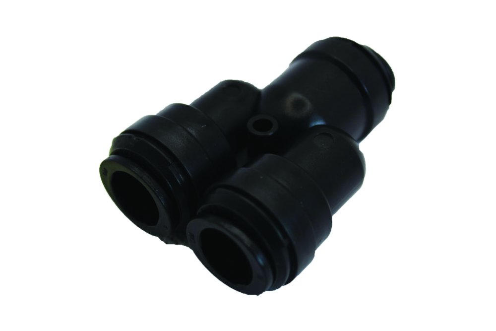 12mm 2 Way Divider. Push Fit Connectors. These fittings are designed for hot or cold water systems in touring caravans. The pipe is simply pushed into the fitting to form a safe secure connection. The body is produced in acetal copolymer. O Rings are nitrile rubber. The collet is produced in acetal copolymer with stainless steel teeth. Minimum Working Temperature -20c. Maximum Working Temperature +70c.