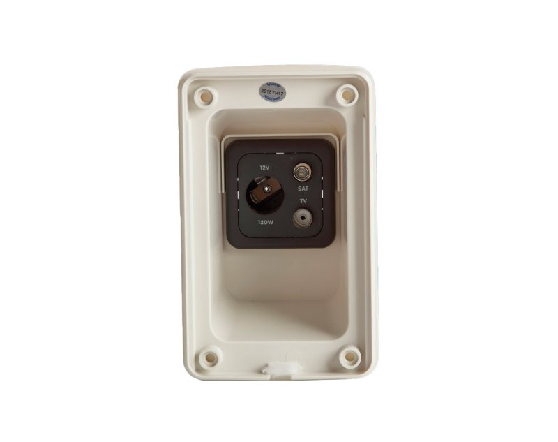 WHALE Socket Multimedia. Supplies TV aerial and satellite as well as providing a 12v d.c. outlet socket to power or charge your devices. Slick design - uniform look on the vehicle's exterior walls.Comfortable to use. Waterproof protection. High quality satin finish UV stabilised to prevent damagefrom sunlight. Cut out Size: 124mm (H) x 75mm (W)x 85mm (D). Overall Size: 103mm (W) x 85mm (D) x 270mm (H) with lid fitted. Please note. Lids Sold Separately.
