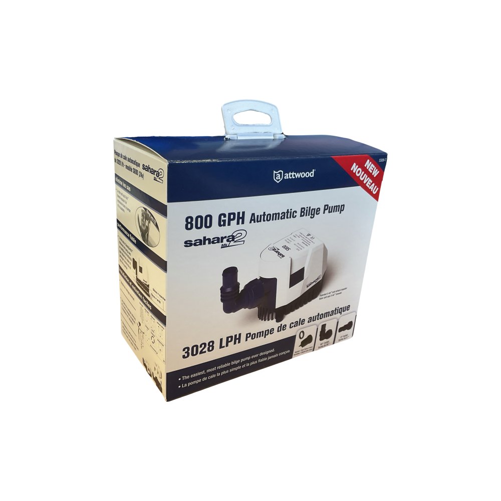 SAHARA 800 GPH Automatic Bilge Pump 12V. The easiest, most relable bilge pump ever designed! The anti airlock impeller ejects trapped air in the pump and pipework. This product is designed with buoyancy control to reduce cycling and extend the life of the pump. There is a universal mounting pattern, external mounting feet and integrated outlet to simplify installation and use. Changeout pump cartridge from hard-to-reach areas with only one hand.