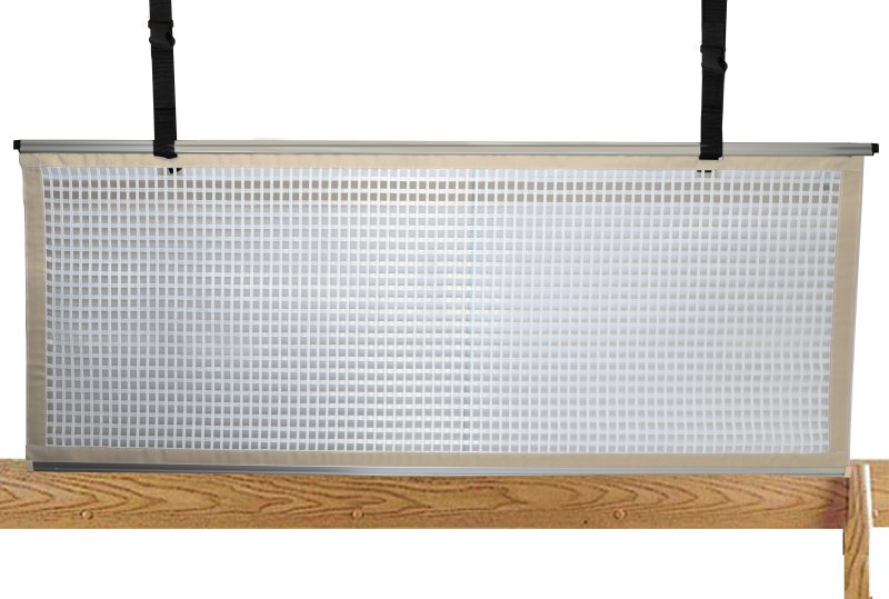 Camper Safety Net - 1500cm x 580cm. This safety net attaches to the slatted base with four screws while two straps connect to the ceiling. This allows the net to be conveniently dismantled in a matter of seconds. Material: Aluminium, Polyester, PA, POM. Size: 1500 x 580cm.