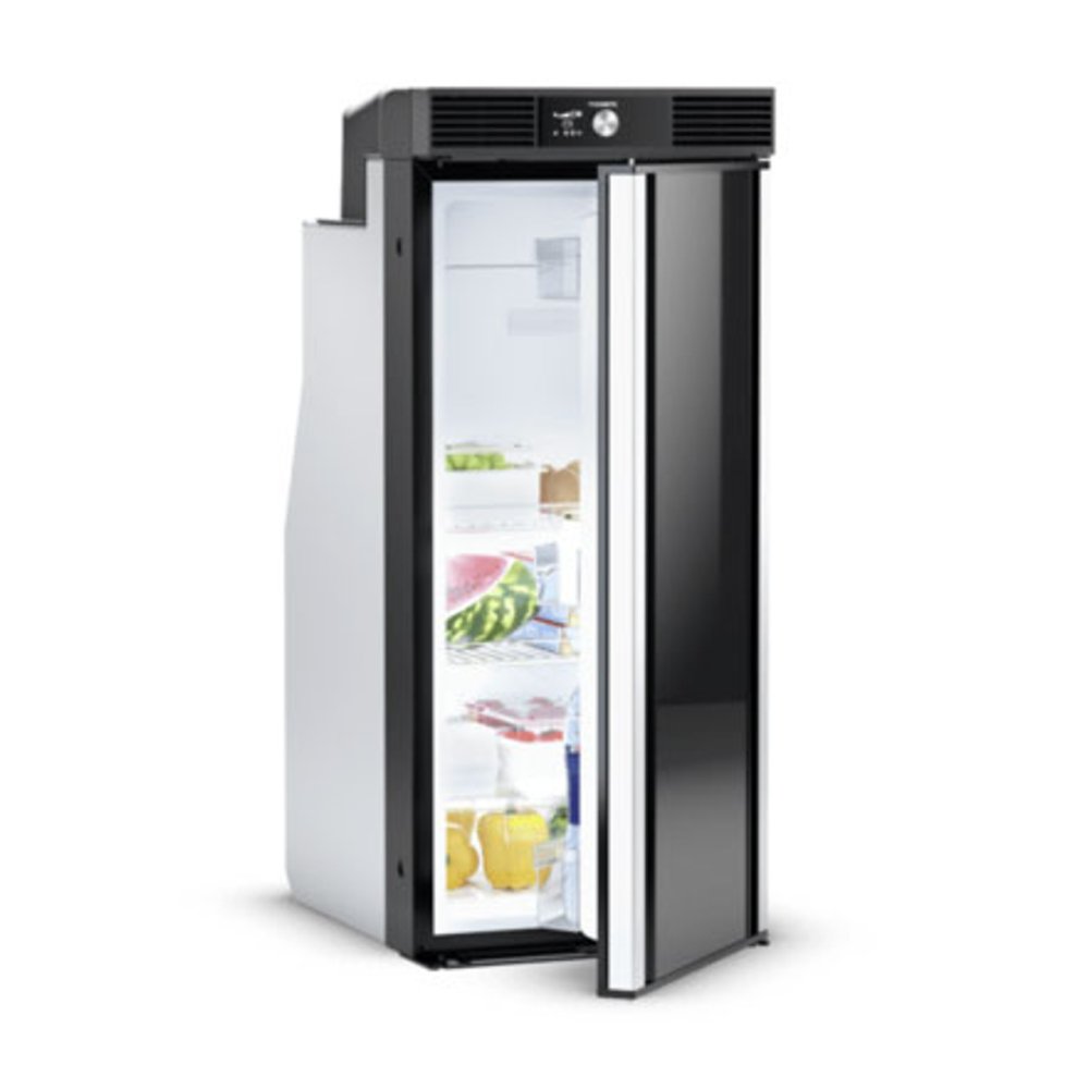 RM9335 - Left hand hinged slimline fridge. Large and slim single door absorption refrigerator including a removable freezer compartment, automatic ignition and manual or automatic energy selection mode. Dimensions - depth 586.50mm, height 1293mm, width 420 mm. SKU net weight metric - 37. Manufacturer Parts.