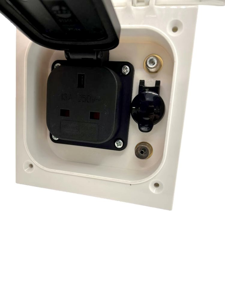 POWERPART 1 x White Utility Box. Complete with 230V UK socket, 12v socket , TV socket, Satellite socket.